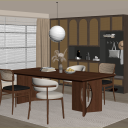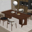 现代中古风餐桌椅组合 藤编餐椅 实木藤编玄关鞋柜 饰品摆件 盆栽 吊灯