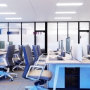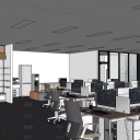 现代奶油办公区 办公室 工位区 展示柜 大厅