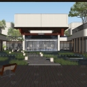 现代新中式酒店建筑SU模型